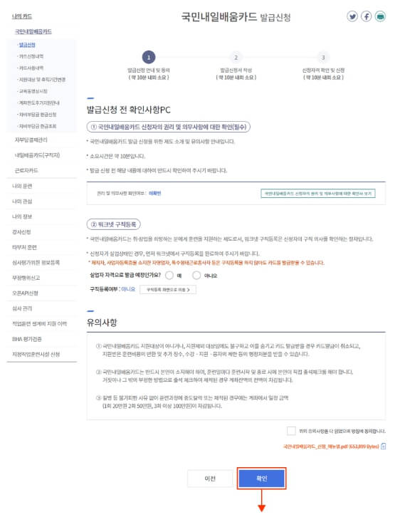 ③ 국민내일배움카드 발급신청, 확인