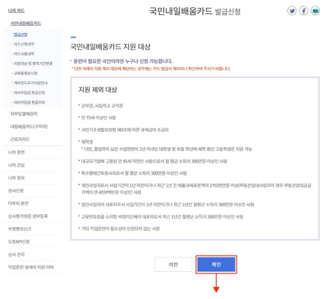 ③ 국민내일배움카드 발급신청, 확인